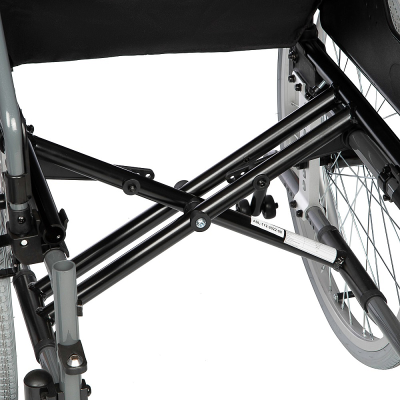- Кресло-коляска имеет трехтрубный крестообразный механизм складывания