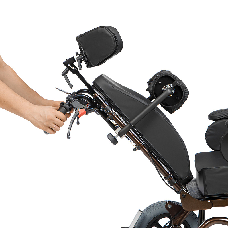 Сиденье вместе со спинкой, плавно регулируемые по углу наклона при помощи рычагов на ручках для сопровождающего лица Сиденье вместе со спинкой, плавно регулируемые по углу наклона при помощи рычагов на ручках для сопровождающего лица