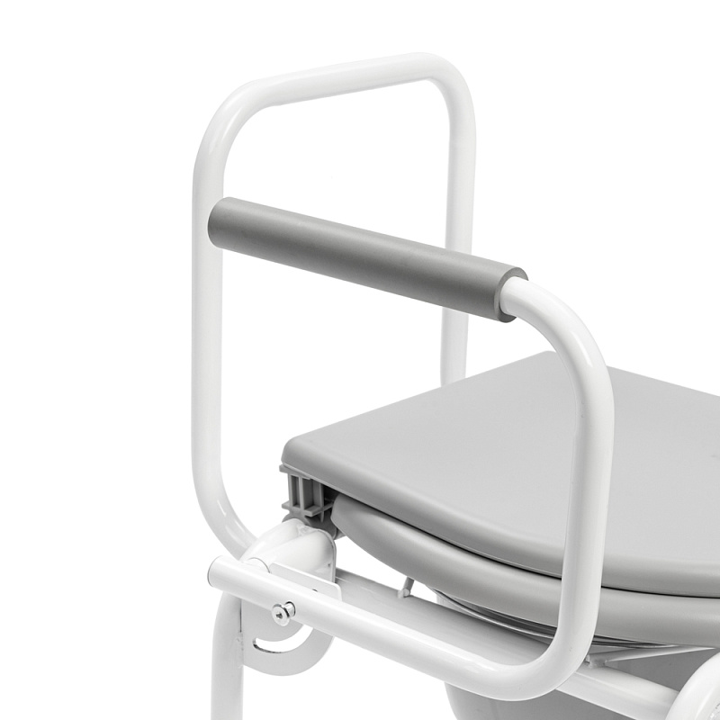 Кресло инвалидное с санитарным оснащением Ortonica по ТУ 9452-002-66445146-2016 TU 3 имеет откидные подлокотники с мягкими накладками для облегчения пересаживания и быстросъемную спинку.